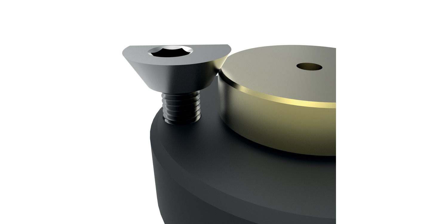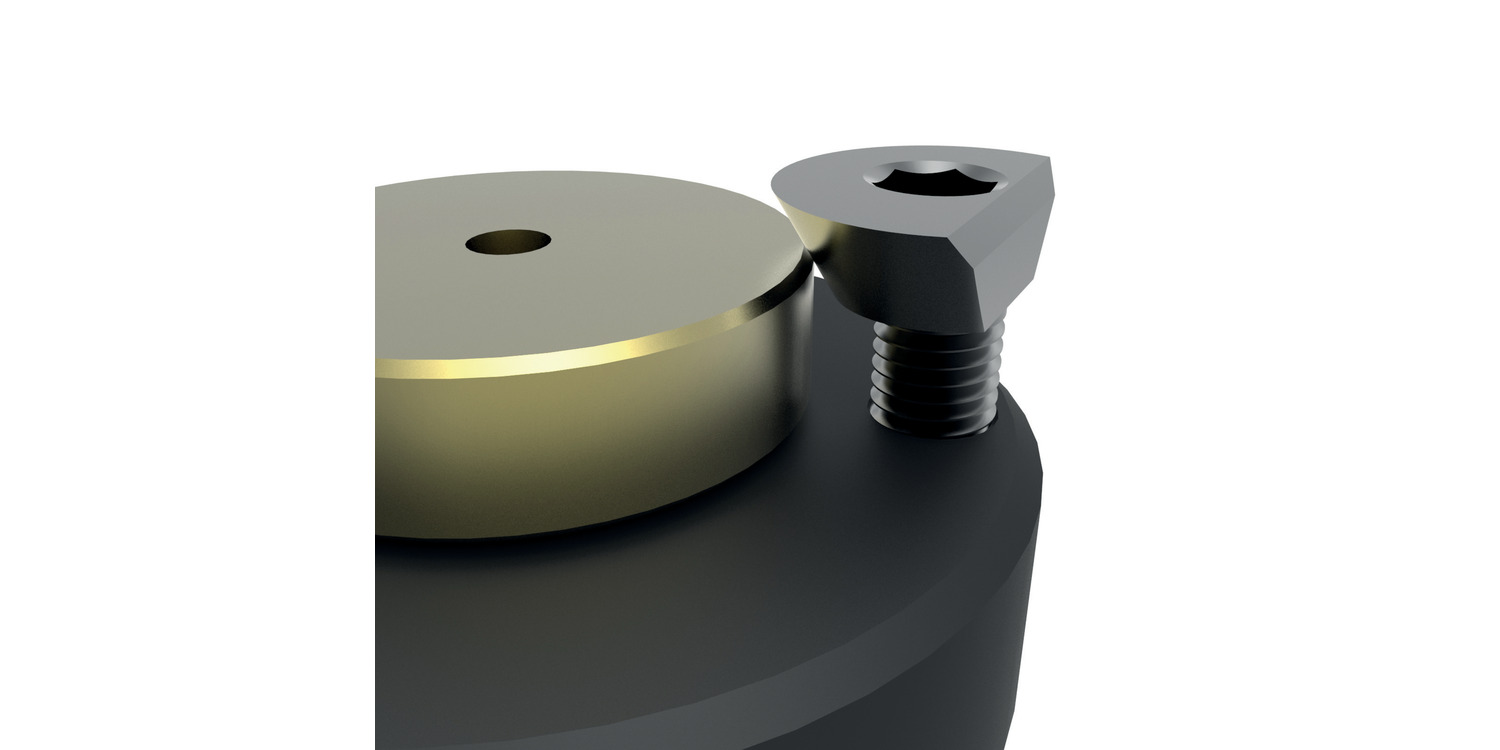Single piece clamping screw. Unique eccentric side profile of the clamp ensures both downhold and side clamping action.