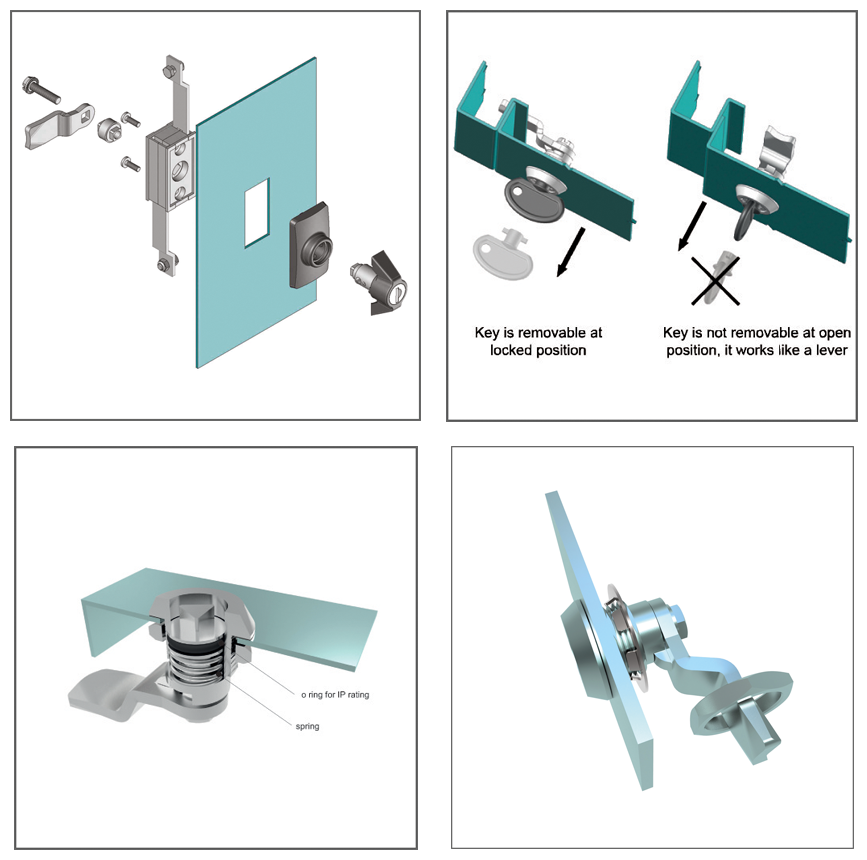 The Cam Lock is a simple locking mechanism used to achieve the securing of access to panels and entry points. They are comprised of a body and latch which rotates when actuated to secure or release. They are used for securing equipment cabinets, enclosures, machine access panels and tool lockers.