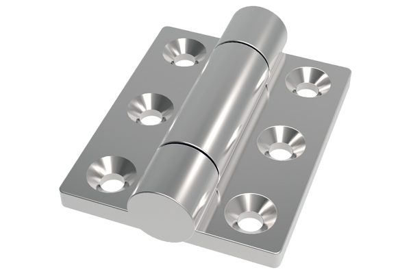 Constant Torque Friction Hinges for screw mounting. Made from polished stainless steel (AISI 304 and 303); for holding a lid or door in position in corrosive environments.
