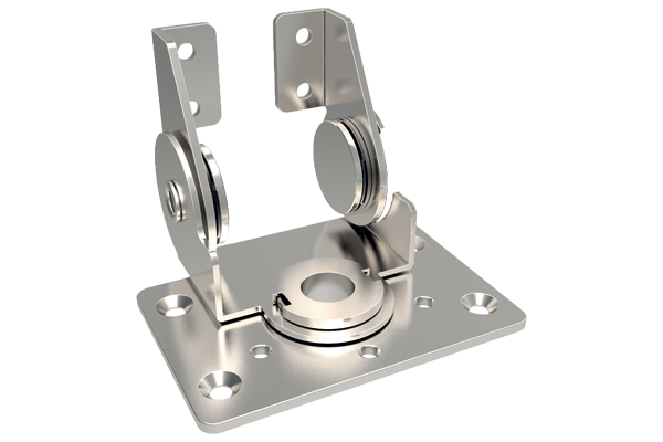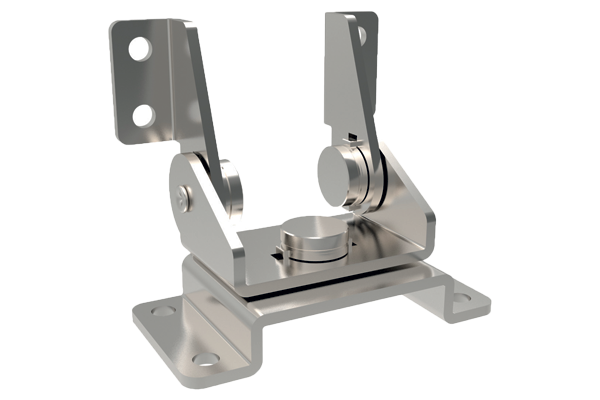 Dual axis constant torque friction hinges made from stainless steel (430). Stability is provided in both axis and angle of swivel can be limited with use of a pin or screw.