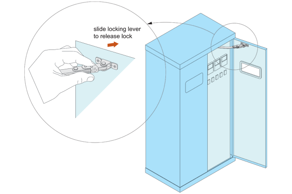For plain/flush mounted doors, as well as electrical panels and covers. Opening angle 180°.