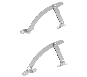 Stay holds door in 90° open position. When pushed to close, stay gently pulls door closed. For mounting in the inside top panel of door.