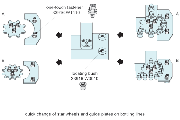 One-Touch Fasteners are the ideal solution for rapid and recurring change overs of tooling or set ups. Their application is as diverse as bottling processes, machine covers, changing of cogs and drive belts. One-Touch Fasteners provide a quick, simple and secure change over solution with no time wasted in unfastening of permanent fixings, and no opportunity for lost fixings in your machinery.