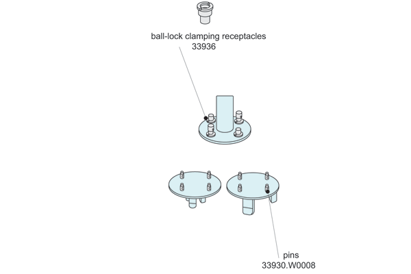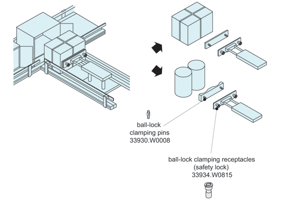 Ball clamping, locking One-Touch Fastener actuated with quarter turn t-handle. Clamping balls retract when turned to the off position. For use in conjunction with pin 33923.