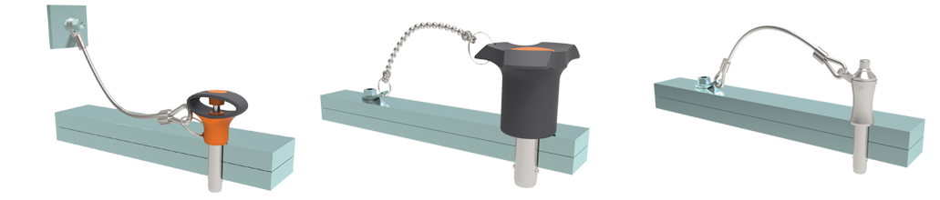 Safety Handle Ball Lock Pins protect against accidental actuation of the ball lock pin. Can be used for quick fastening and locking of frequently repeated connections.