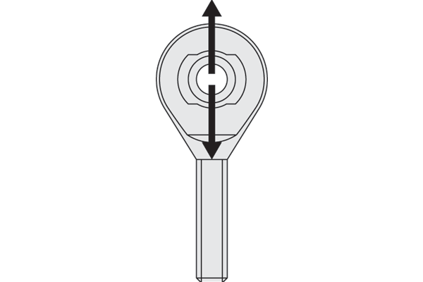 The ultimate Radial Static Load rating is measured as the failure point, when a load is increasingly applied to a pin through the Rod End's bore and pulled straight up while the Rod End is held in place. Note that, the actual rating is determined by calculating the lowest of the following three values: