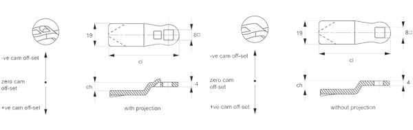 With projection cams prevent turning of the cam over 45°, but is not suited to all swing handles. For correct projection type please see individual swing handle technical pages.