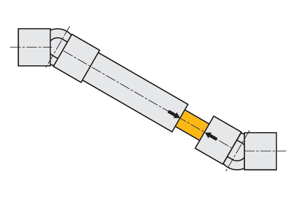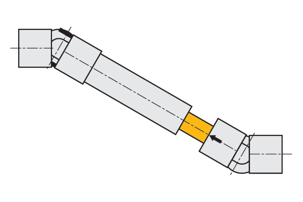 When using two opposite single joints, ensure the alignment of the inside yokes.