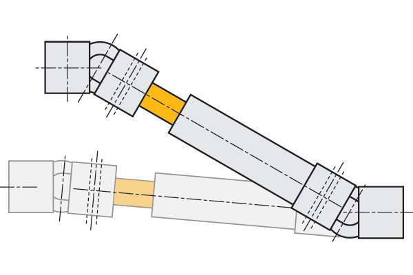 Two Universal Joints connected by a sliding splined shaft with the ability to extend, allowing adjustments in length during installation. Bore diameters 10mm up to 30mm.