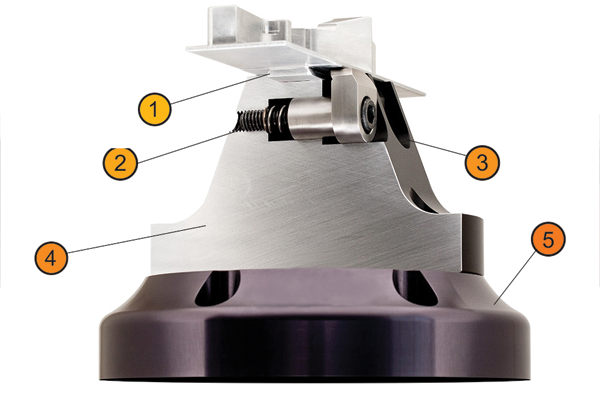 Speed up your manufacturing by machining five, full sides of the workpiece in one set-up. The dovetail design quickly locks the part in place for extreme clamping strength and rigidity, without wasting much material on the base.