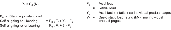 The maximum load is defined by the static basic load rating C0. If static loads are a combination of radial and axial loads, the equivalent static load will have to be calculated.