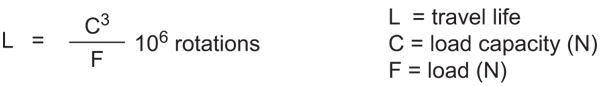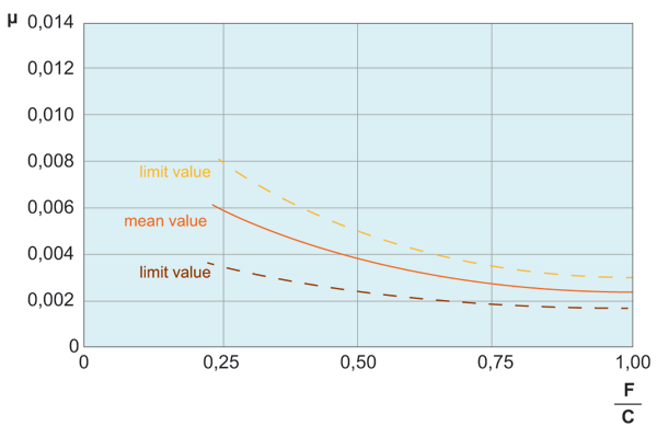 The maximum conveying speed allowed amounts to 2m/s. The load capacities specified apply to any mounting position and are based on 106 rotations of the load ball. With the units being used over a longer time at speeds exceeding 1 m/s, an increase in temperature as well as a reduction in travel life must be expected depending on the load.