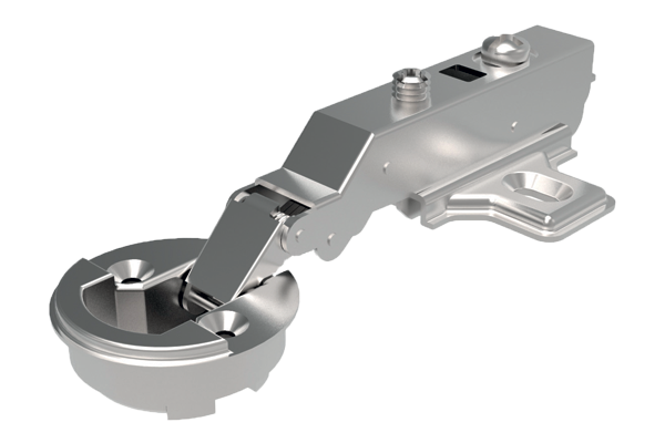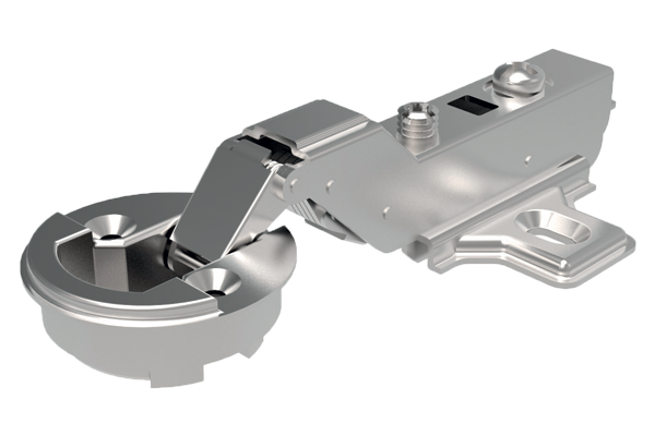 Half-overlay Hinges are mounted to the inside of the cabinet frame, with half of the hinge profile resting on the cabinet frame. The door/panel is hung proud of the cabinet frame. Requires mounting holes to be cut into the glass.