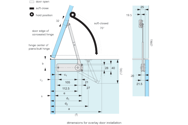 | Hinge type | a | b | c | d | c1 | d1 | e | f |