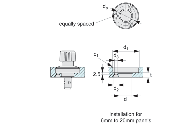 | 33916/17/18 | Single panel thickness t±0,2 | d6 +0,1 +0,0 | d7 | d8 | d9 | d5 |