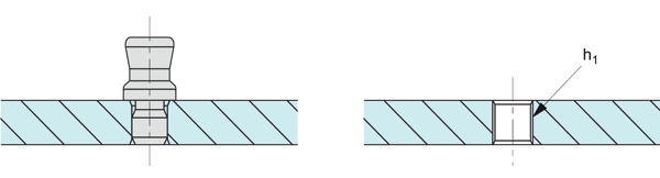 Prepare a tapped hole according to the thread of the pin. Ensure a counter bore is machined to depth h2 to complete pin installation.