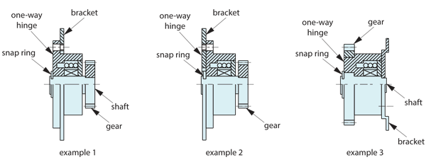 | Standard model | Insert the shaft to the one-way hinge and put the boss part of the hinge into the grooves of gears and other matching component. When operated, the hinge needs to be turned. |