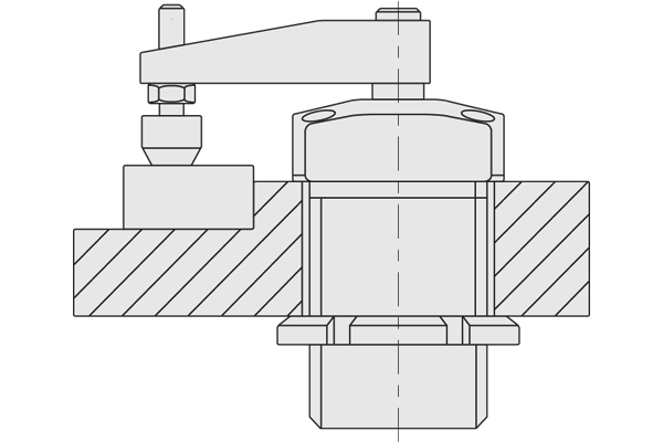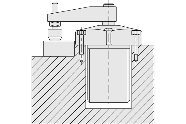12910 - Pneumatic Swing Clamp - Block version in use on a fixture