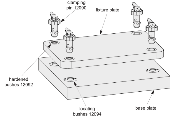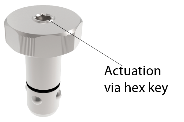 By tightening the clamping screws, the Positioning Clamping Pin is centred and clamped with four balls in the locating bush. The clamping screw can be operated manually via a removable handle or via a hex. key.
