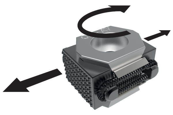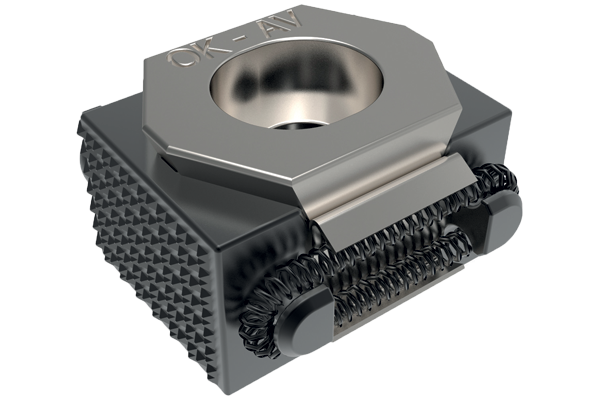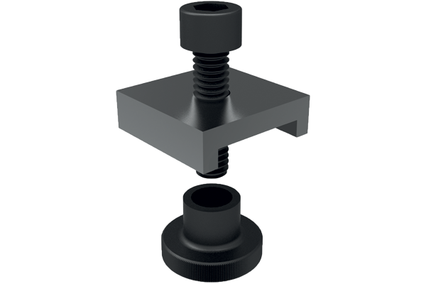 When tightening the clamping screw, the clamp's tapers expand simultaneously, pushing components against the fixture stops as well as exerting a pull-down force, pulling components to the fixture base (double taper models only).