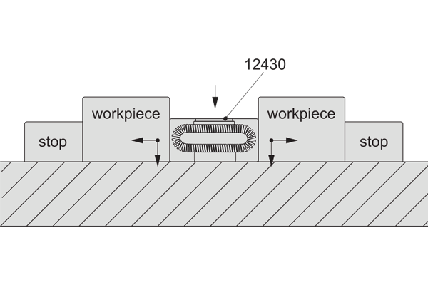 Horizontal clamping and pull-down action, ensuring full contact of workpiece with fixture base.