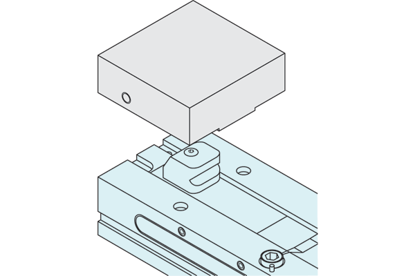 Align the center jaw over corresponding mounting and locating holes and fasten down with socket head cap screws