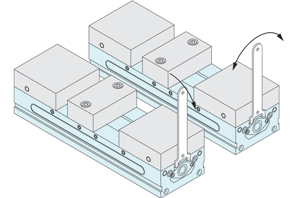 The AccuSnap Vice Jaw System (pictured), shows master jaws and parallels being used for workpiece set-up. The AccuSnap system allows set-up change-over in seconds with extreme accuracy.