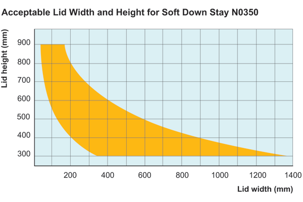 Orange area of chart provides guide to acceptable lid width and height combination. This is a guide only, check load bearing of the lid application. Chart Based on typical wooden lid of 20mm thickness.