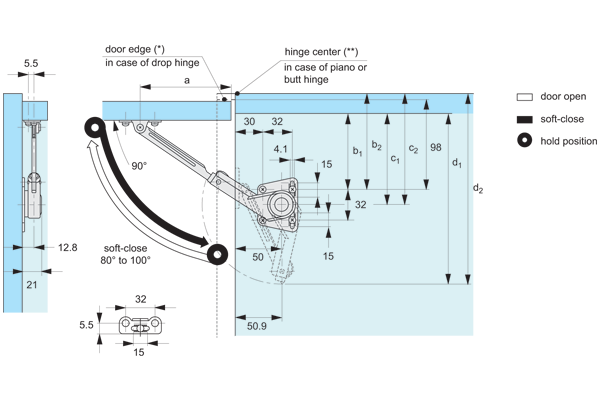 | Hinge type | a | b1 | c1 | d1 | b1 | c2 | d2 |