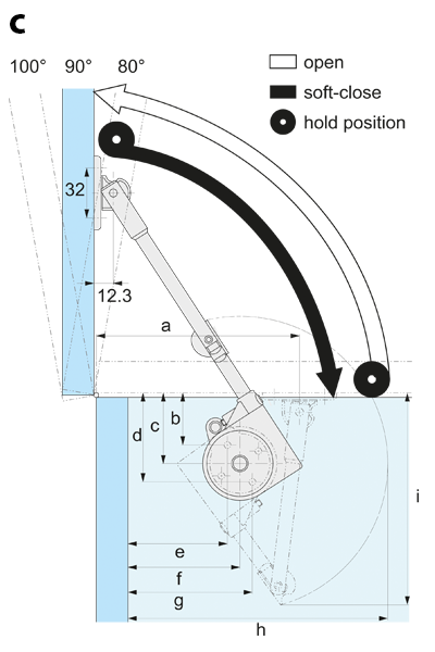 c. Bottom left: Top opening lid with single knuckle hinge - inset type