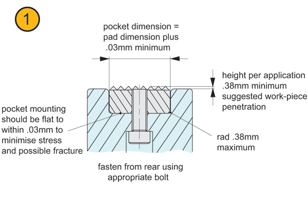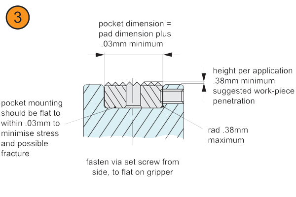 Our Carbide Grippers & Inserts can be installed in a number of different ways; the most suitable mounting method depends upon the specific insert. Please refer to the product data table for specific information.