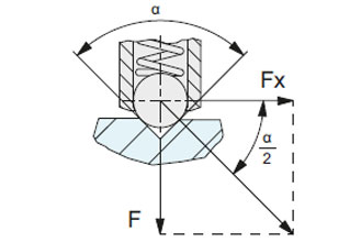 We are able to provide the following formula as an approximation of the pull or push force (N) required to 'release' a ball plunger from its indexing counterpart.