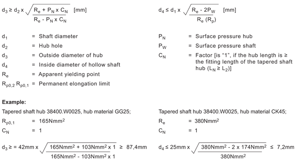 When fitting Tapered Shaft Hubs, the outside diameter of the hub and the inside diameter of the hollow shaft have to be considered.