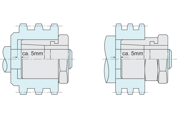 Upon mounting, if the Hub sits close to a collar, an axial offset is not possible. In this case, only 60% of the force mentioned in the charts can be transmitted.