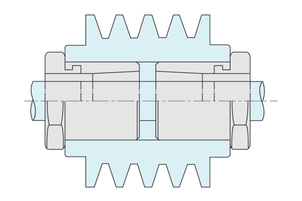 When using this method, the Tapered Shaft Hub which is tightened, first transmits 100% of the forces mentioned in the charts. When tightening the second Tapered Shaft Hub, an axial offset of the hub is not possible. Therefore, this Tapered Shaft Hub is only able to transmit 60% of the forces.