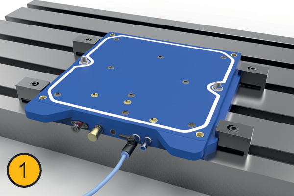 Base unit is identified and securely mounted to the machine table.