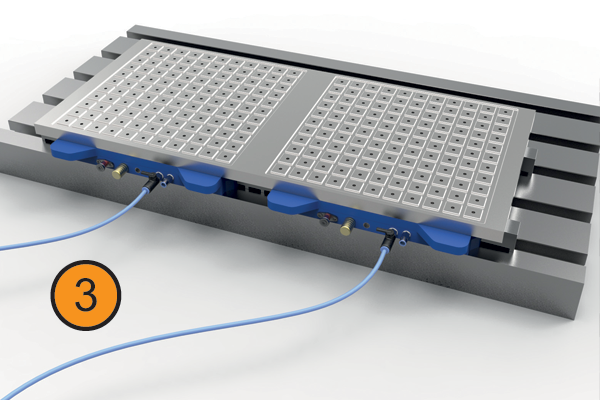 If you join two vacuums units together, this will give you the surface area needed to clamp your components of the size mentioned above. If you are machining with lateral forces we suggest you use the clamping stops, such as the sliding stop, which can be secured in the vacuum base using its M6 holes.
