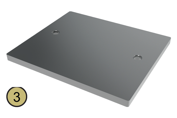 2) Identify the base plate and secure using special mounting washers.