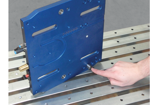 Base alignment pins may be installed to locate off t-slots or precise bores in sub-plate. Remove top plate and secure with provided mounting screws.