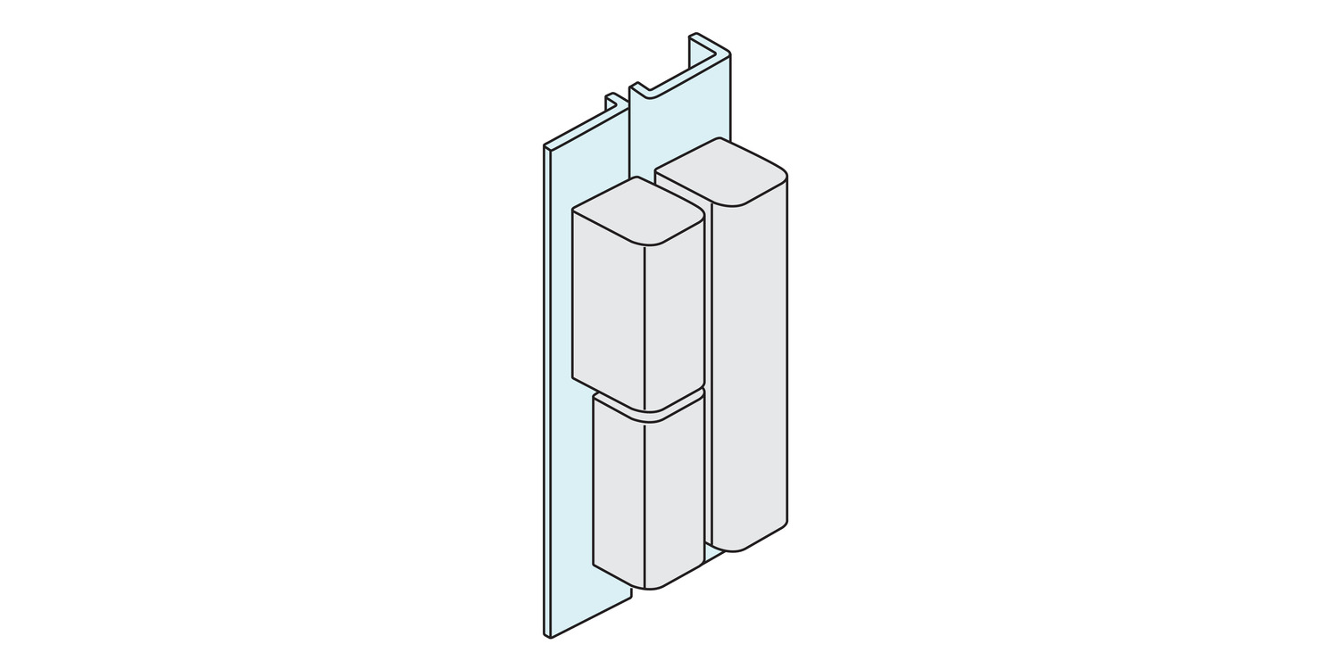 Lift off hinge for plain/flush mounted doors. Concealed mounting screws prevent external access to the hinge. Opening angle 180°.