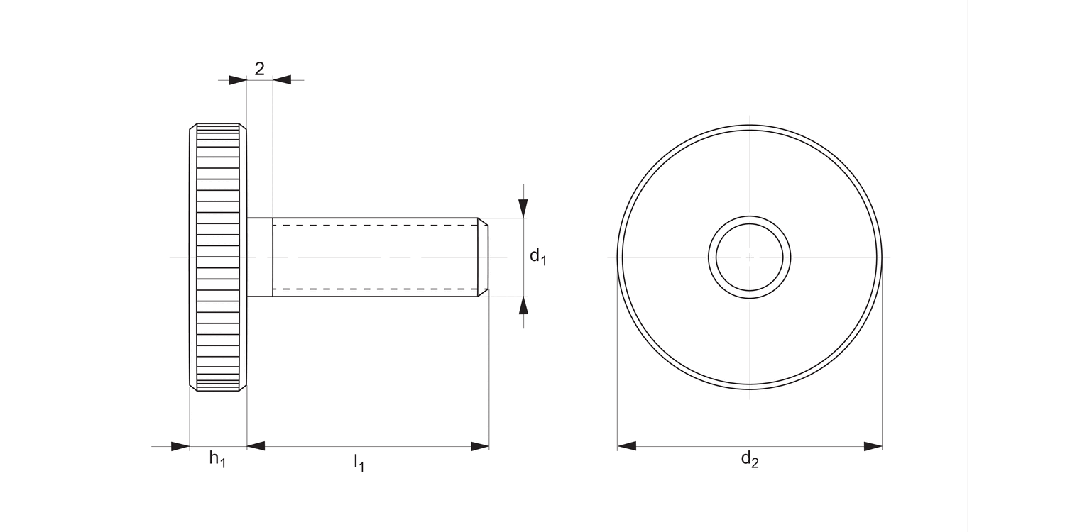 All knurled screws are one-piece manufactured with thread up to the head (DIN-designation 'A').