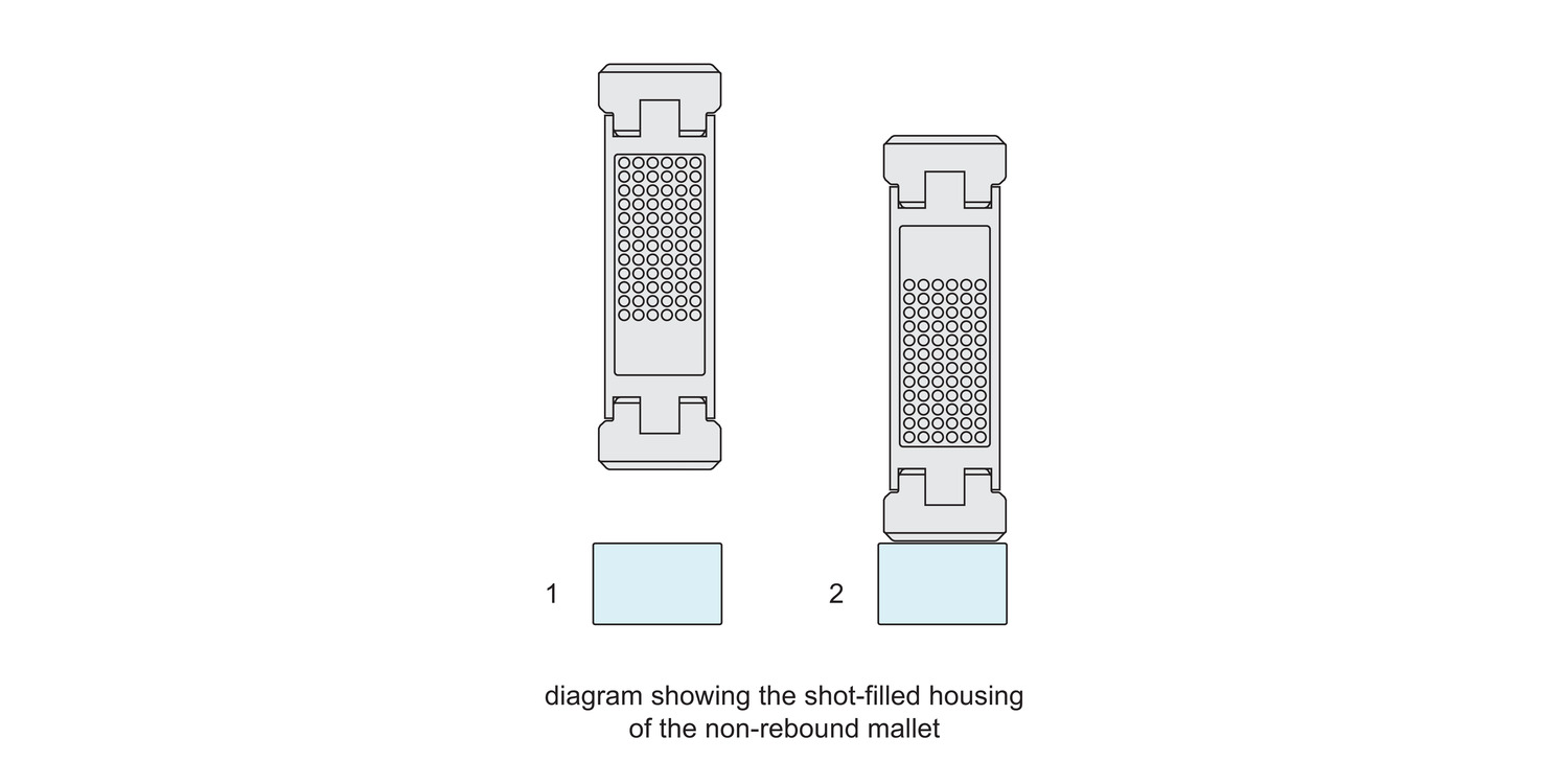 Shot filled housing results in a non-rebound action and assists in full transmission of impact force.