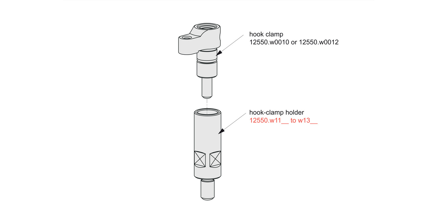 The hook clamp is designed to move up and down in conjunction with the tightening screw.