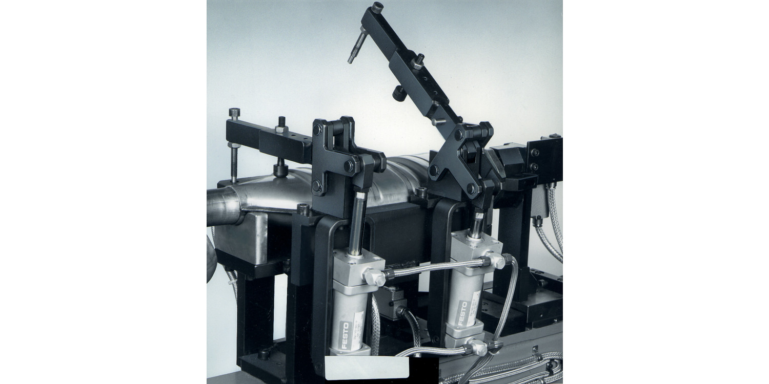 Clamp ready for installation, fitted with FESTO-pneumatic cylinder, double acting.